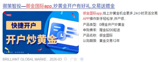 近日有消息曝出香港御金国际贵金属及旗下“御策智投APP”存在内地违规拓展业务的嫌疑,经核查“香港御金国际”下同御金国际在中国内地未获得任何相关单位颁布的金融交易资质,且御金国际官网及御策智投APP均不具备工信部ICP备案,目前该平台正通过社交媒体,聊天群及各广告平台“投流”方式,大肆向内地投资者提供黄金交易服务!